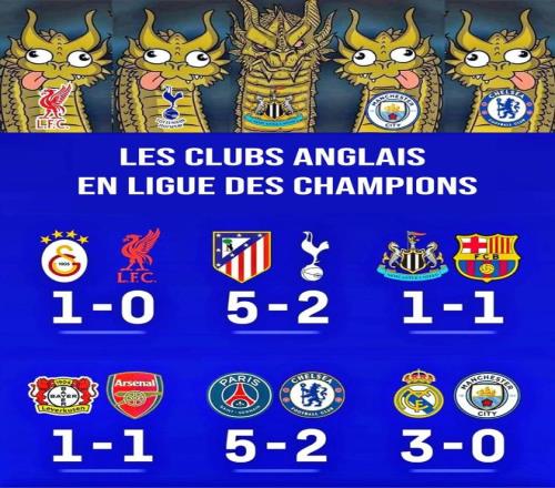 欧冠小组赛结束时,英超球迷还在畅想包揽四强,把欧冠变成英冠的局面。没想到16强首回合战罢,参赛的6支英格兰球队无一取胜,阿森纳和纽卡斯尔联战平,曼城、切尔西和热刺都已经落后3球,利物浦也一球输掉比赛。现在,英超球队面临全军覆没的风险,腹黑的英媒直接摘掉了英超狮子标志上的王冠。